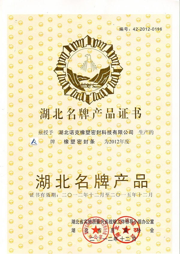湖北名牌產(chǎn)品證書(shū)