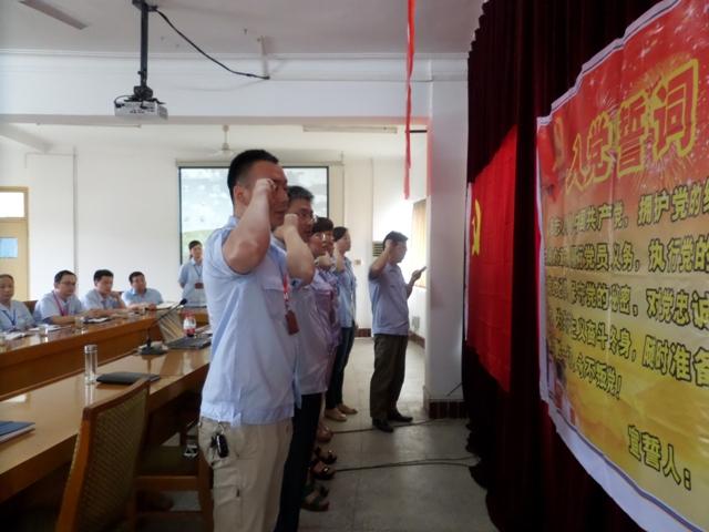伴著雄渾的國歌聲,公司所有黨員干部全體起立,向黨旗致禮。隨后公司機關(guān)黨支部書記王子星宣讀了2013年預備黨員轉(zhuǎn)正以及接收2014年新預備黨員的決定。7名新預備黨員在黨委副書記李應濤的領(lǐng)誓下,進行了莊嚴的宣誓。隨著新黨員錚錚誓詞的落地和預備黨員代表發(fā)言完畢后。公司還特別邀請到十堰黨校黨務處李教授宣講以“踐行核心價值觀、發(fā)揮黨員先進性”為主題的黨課。