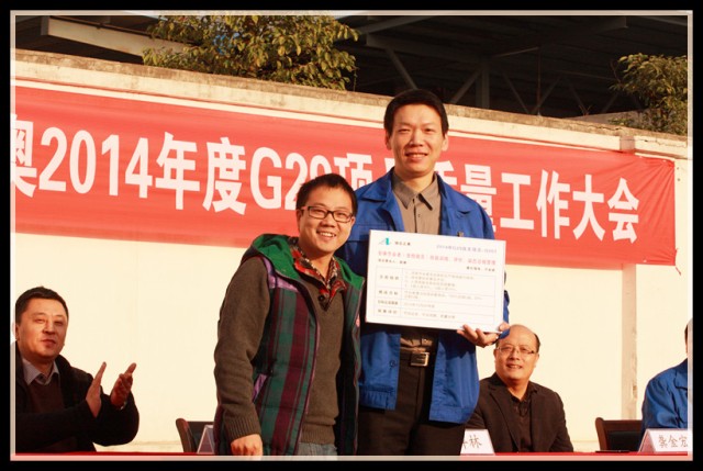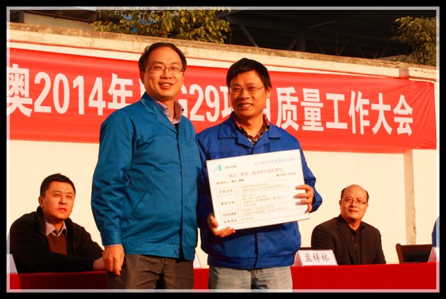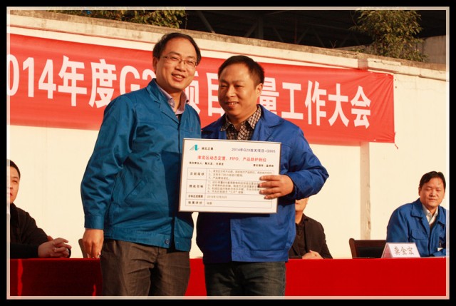 到會(huì)領(lǐng)導(dǎo)為G29項(xiàng)目組成員頒發(fā)了戰(zhàn)表,為下一階段的改善制定新的挑戰(zhàn)目標(biāo),全體員工見(jiàn)證了這一重要時(shí)刻,并在會(huì)議現(xiàn)場(chǎng)用熱烈的掌聲表達(dá)了完成任務(wù)的信心和決心。